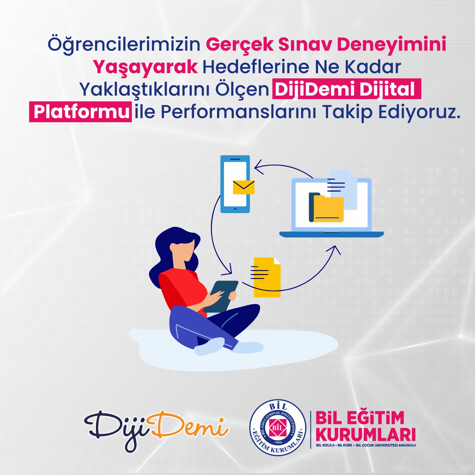 Öğrencilerimizin Gerçek Sınav Deneyimini Yaşayarak Hedeflerine Ne Kadar Yaklaştıklarını Ölçen DijiDemi Dijital Platformu ile Performanslarını Takip Ediyoruz.