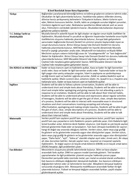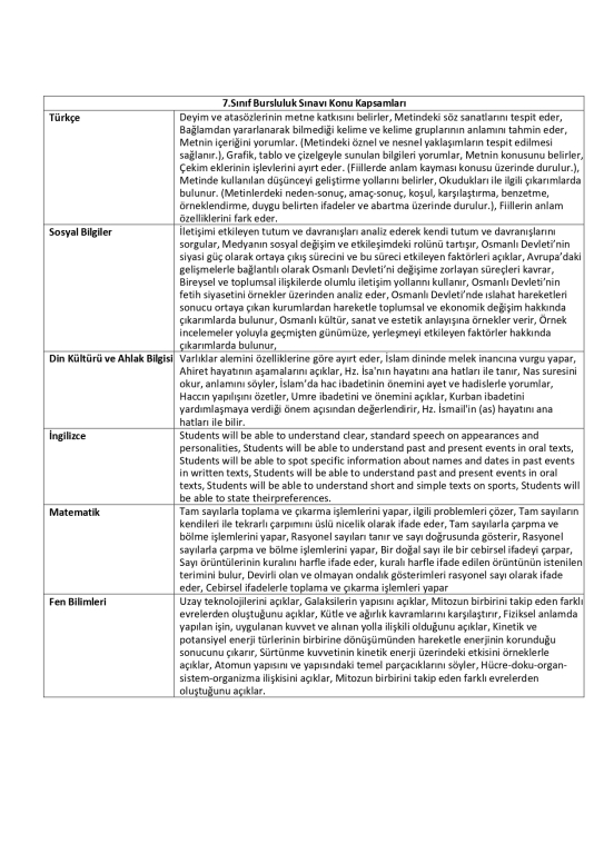 • ADIYAMAN BİL KOLEJİ BURSLULUK SINAVI ORTAOKUL KADEMESİNİN KAZANIMLARI