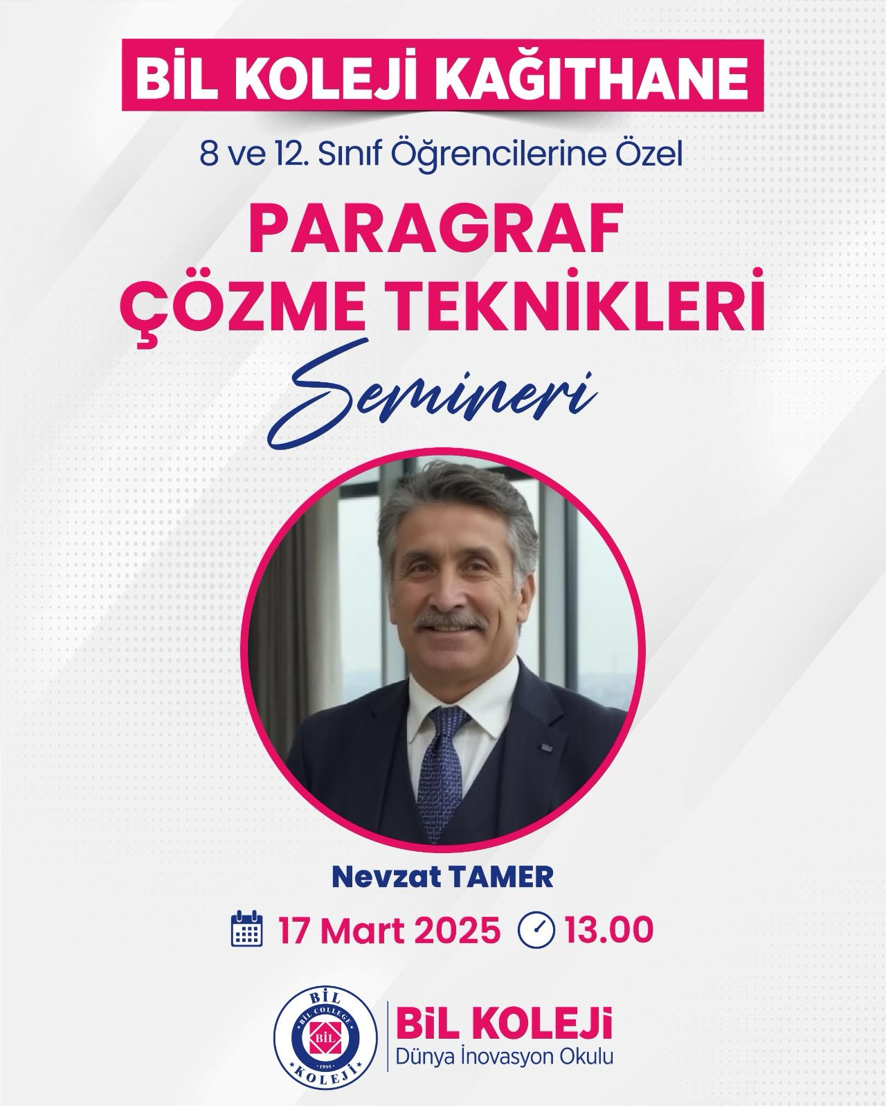BİL KOLEJİ KAĞITHANE 8 VE 12. SINIF ÖĞRENCİLERİNE ÖZEL PARAGRAF ÇÖZME TEKNİKLERİ SEMİNERİ!