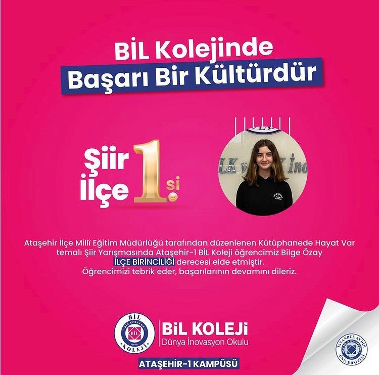 Ataşehir İlçe Milli Eğitim Müdürlüğü tarafından düzenlenen Kütüphanede Hayat Var temalı Şiir Yarışmasında…