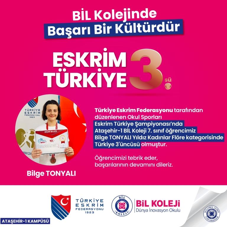 Özel Ataşehir Bil Ortaokulu Yıldız Kız Mendil Kapmaca Okul Takımımız Ataşehir İlçe 3.sü olmuştur.