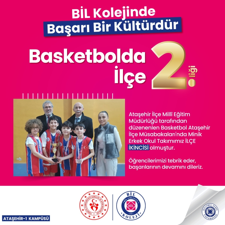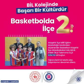 Ataşehir İlçe Milli Eğitim Müdürlüğü tarafından düzenlenen 3*3 Basketbol turnuvasında Minik Erkekler kategorisinde takımımız İlçe 2.si olmuştur. Öğretmen ve öğrencilerimizi tebrik ederiz.