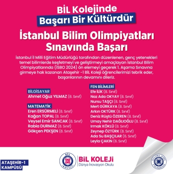 İSBO Bilim Olimpiyatları I. aşamaya geçmeye hak kazanan öğrencilerimizi tebrik eder, başarılarının devamını dileriz.