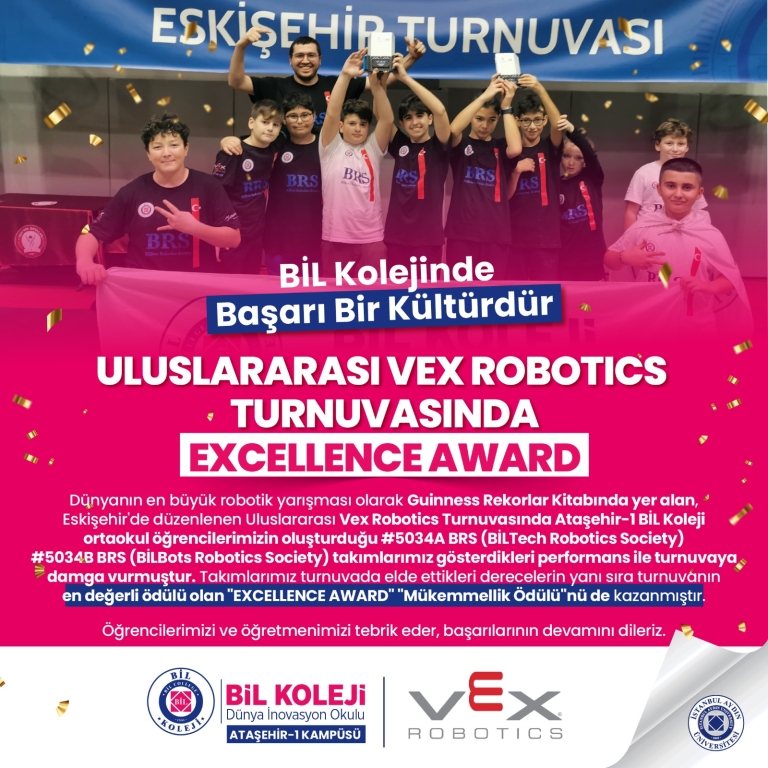 • UULUSLARARASI VEX ROBOTICS TÜRKİYE ŞAMPİYONASI ROBOT SKILLS İKİNCİLİĞİ