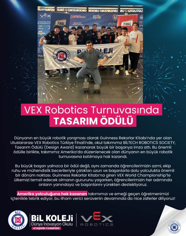 • ULUSLARARI VEX ROBOTICS DESİGN AWARD ÖDÜLÜ