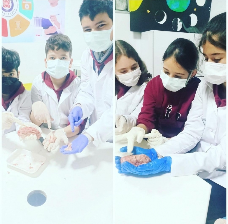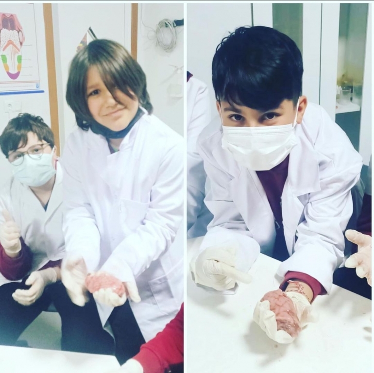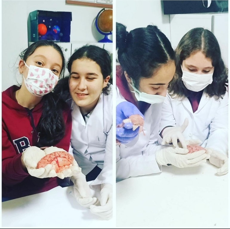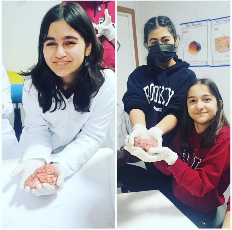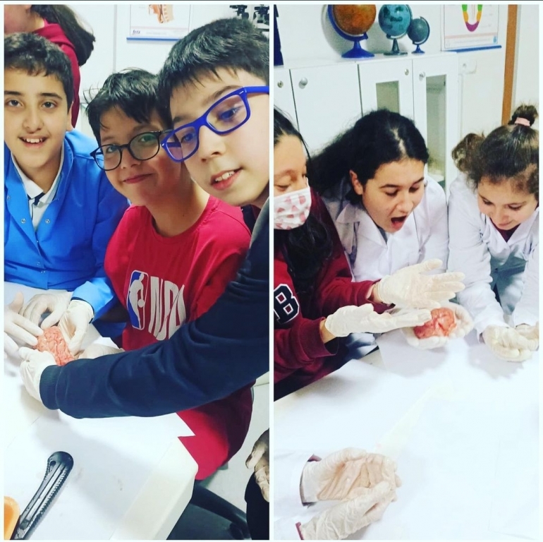 6. sınıf öğrencilerimiz Fen Bilimleri dersinde sinir sisteminin en önemli organı beyini incelediler.