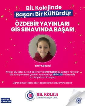 Avcılar BİL Koleji 5. sınıf öğrencilerimiz, Özdebir Yayınları GİS Türkiye Geneli Sınavı’nda elde ettikleri derecelerle bizleri bir kez daha gururlandırdı.
