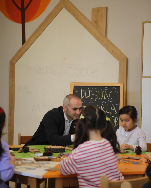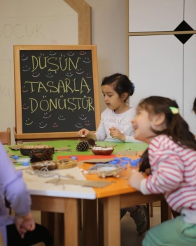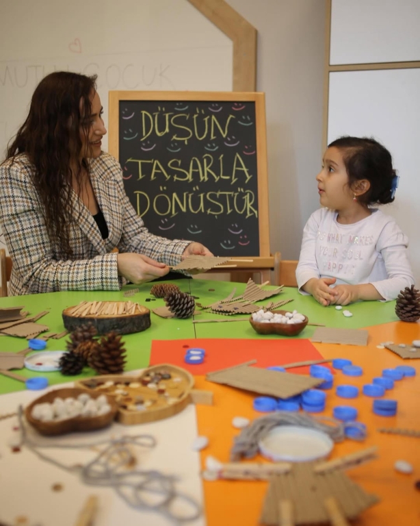 Bugün konuk ettiğimiz anaokulu öğrencilerimizle geri dönüşüm materyalleri kullanarak kendi hayal gücümüzü ortaya çıkardık.
