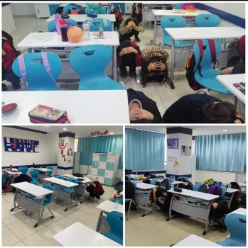 Deprem Anında yapılması gerekenleri öğrenen öğrencilerimiz ile gerçekleştirdiğimiz Deprem Tatbikatımız