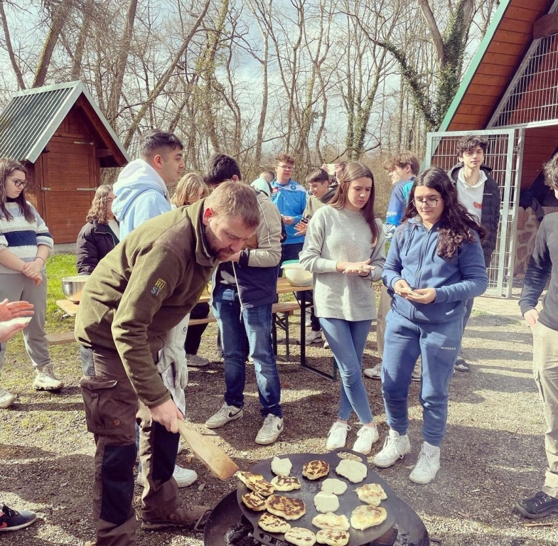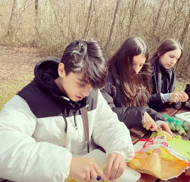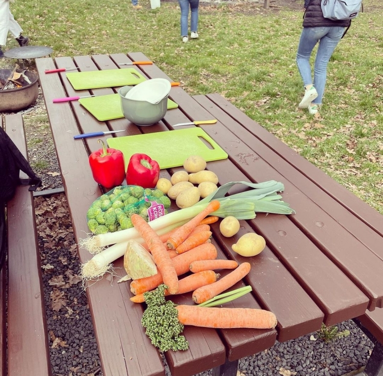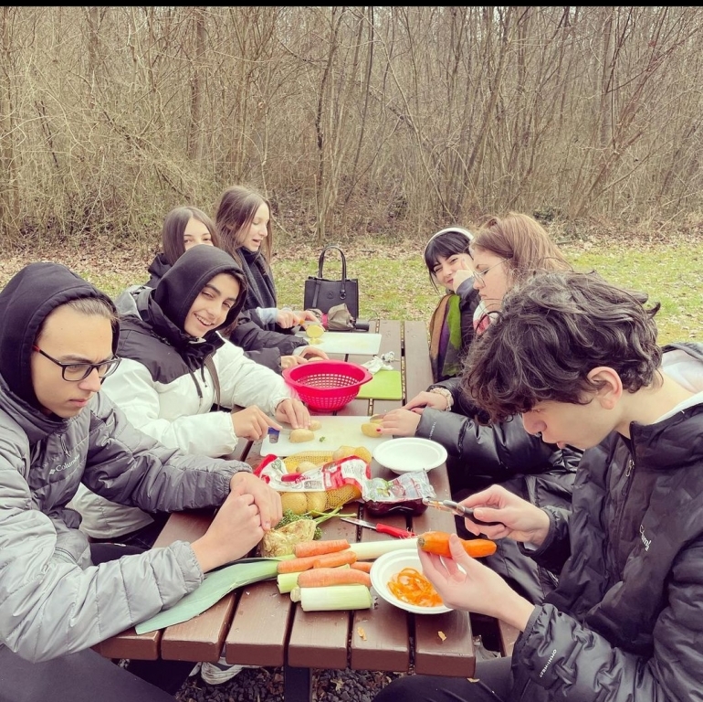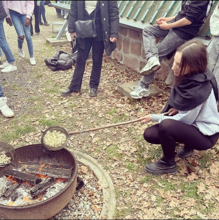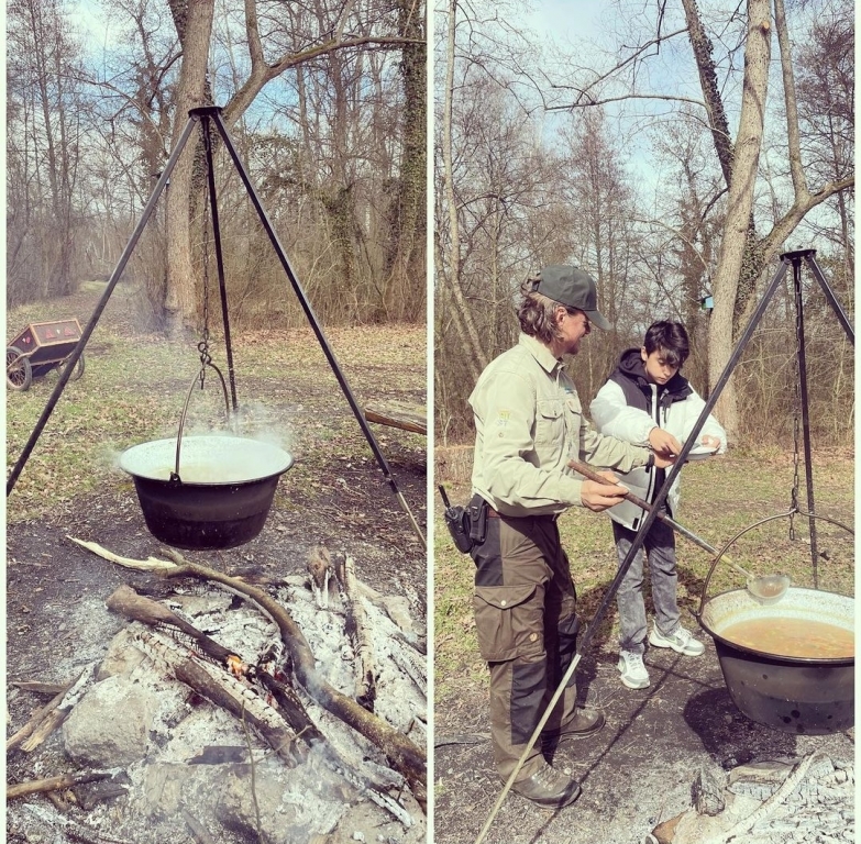 Almnya'da keyifli bir doğa yürüyüşünden sonra açık ateşte kendi yemeklerini pişirdiler.