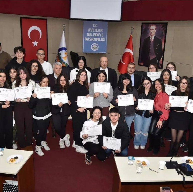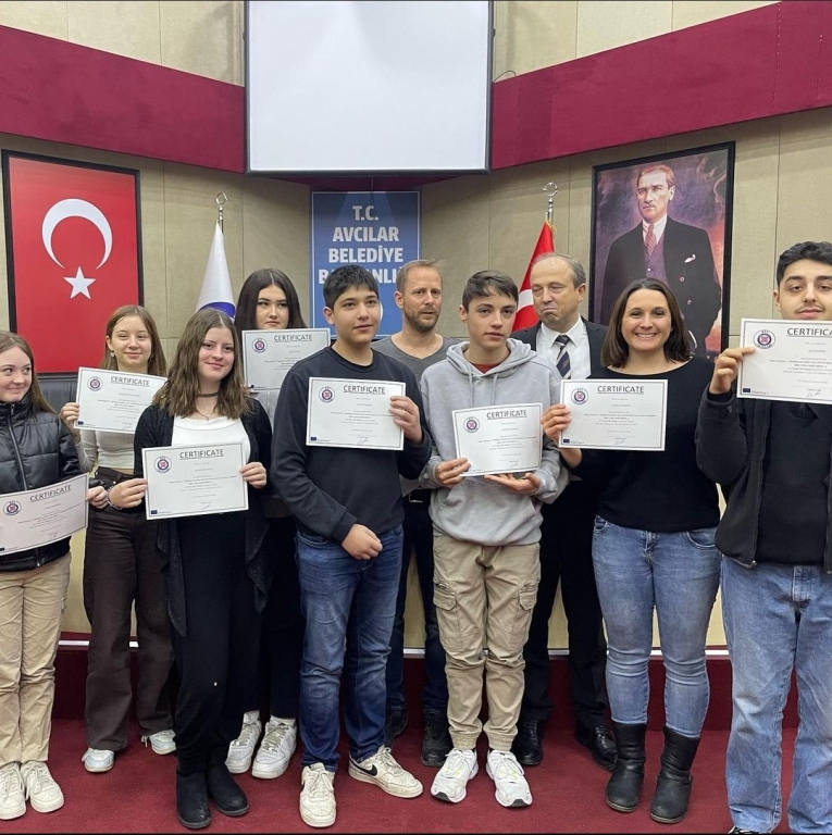 Erasmus+ Projesi kapsamında okulumuzca misafir ettiğimiz öğrenci ve öğretmenlerimizle projemizin Türkiye hareketliliğini tamamladık. Başarılı bir Erasmus haftasının sonunda sertifikalarımızı Avcılar Belediye Başkanı Sn. Turan Hançerli'den aldık.