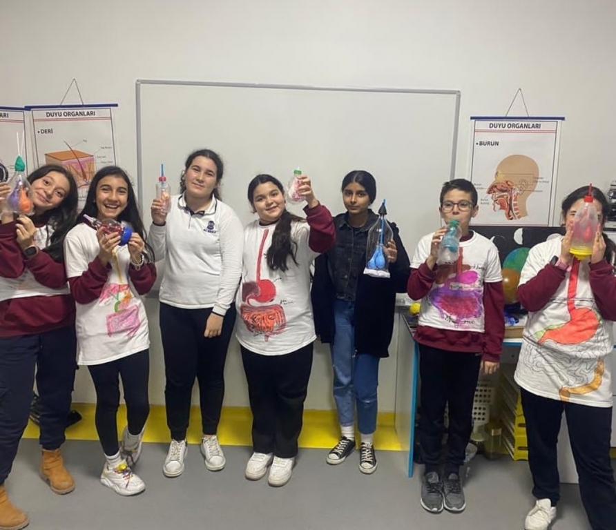 6.sınıf öğrencilerimiz Fen Bilimleri dersinde sistemler konusunda sindirim sistemi, boşaltım sistemi ve solunum sistemi etkinliği yapıp konuyu pekiştirdiler.