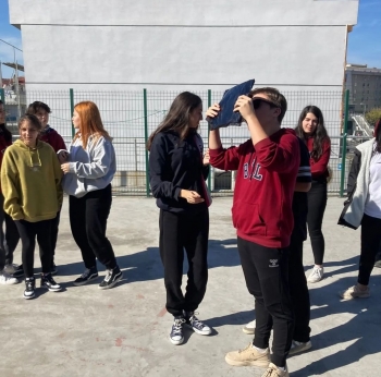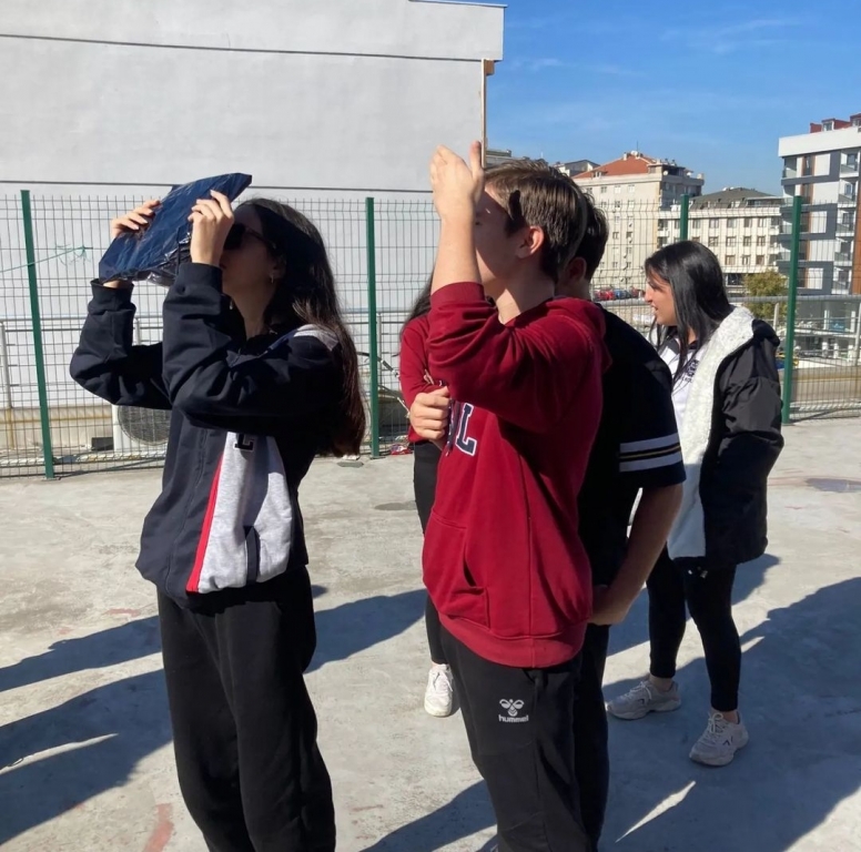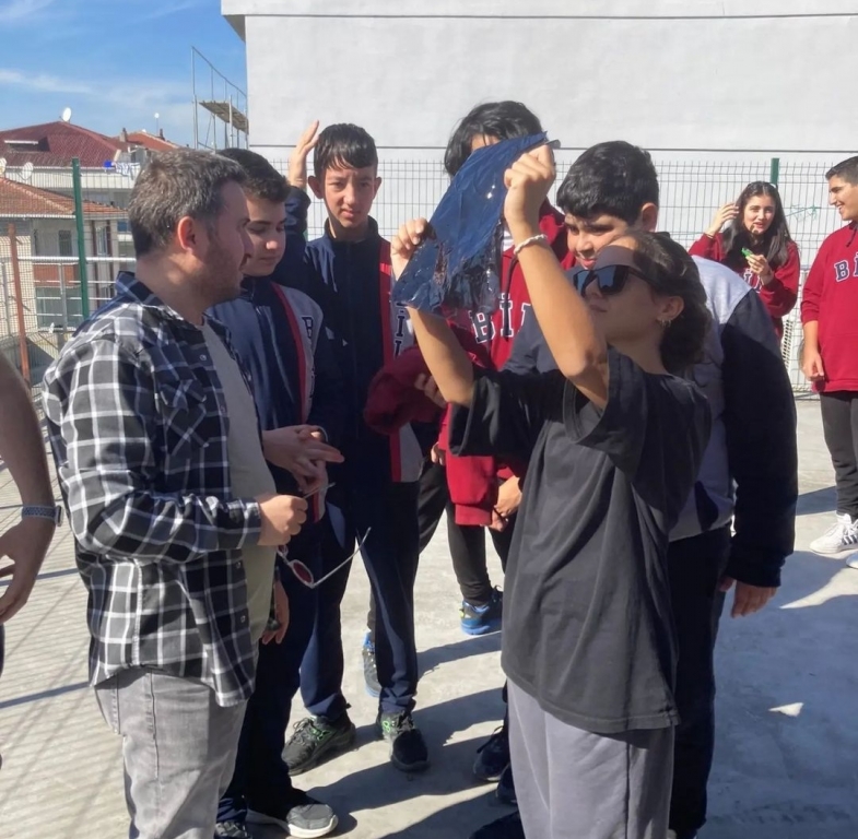 Lise öğrencilerimiz Fizik ve Coğrafya derslerinde bugün 12.45'te başlayan ve 15.15'te bitecek olan güneş tutulmasını gözlemlediler.
