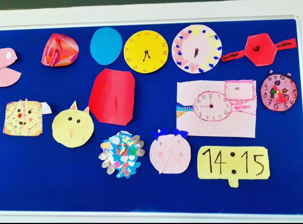 5.sınıf öğrencilerimiz İngilizce dersinde kendi saatlerini tasarlayarak söylediler.