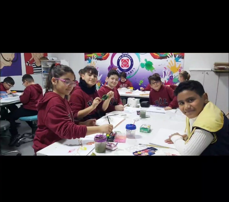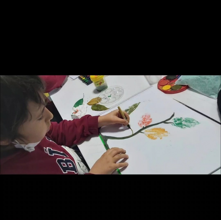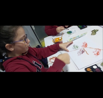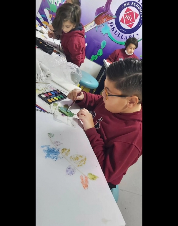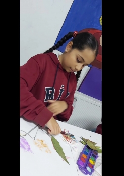 Doğal objeyi öğrenip sulu boya tekniğini kullanarak yaprak baskısı çalışmalarını oluşturdular.