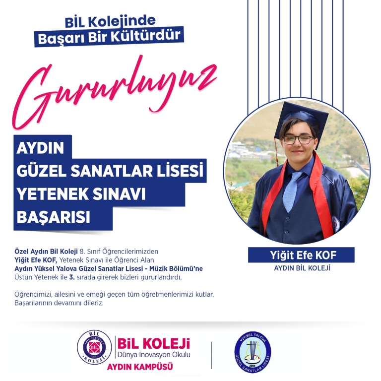 Özel Aydın Bil Koleji 8. Sınıf öğrencilerinden Yiğit Efe KOF, yetenek sınavı ile öğrenci alan Aydın…