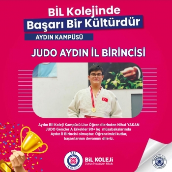 Aydın Bil Koleji öğrencimiz Nihat YAKAN, Judo Genç Erkekler kategorisinde tüm rakiplerini yenerek, Aydın İl Birincisi olmaya hak kazanmıştır.