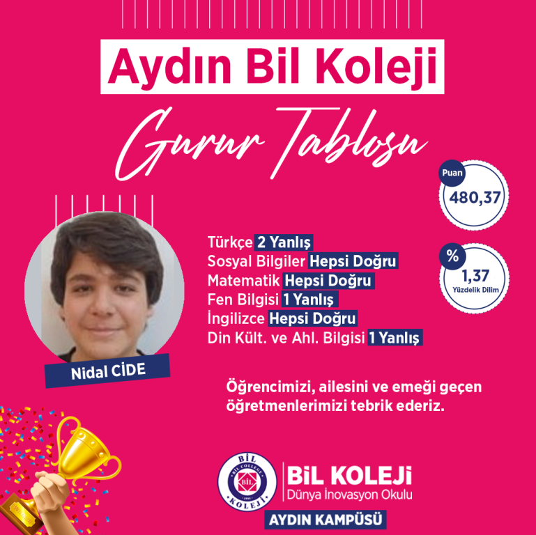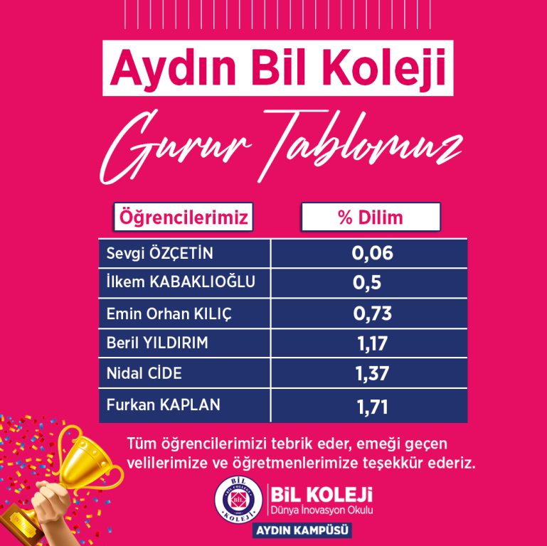 Tüm öğrencilerimizi tebrik eder, emeği geçen velilerimize ve öğretmenlerimize teşekkür ederiz.