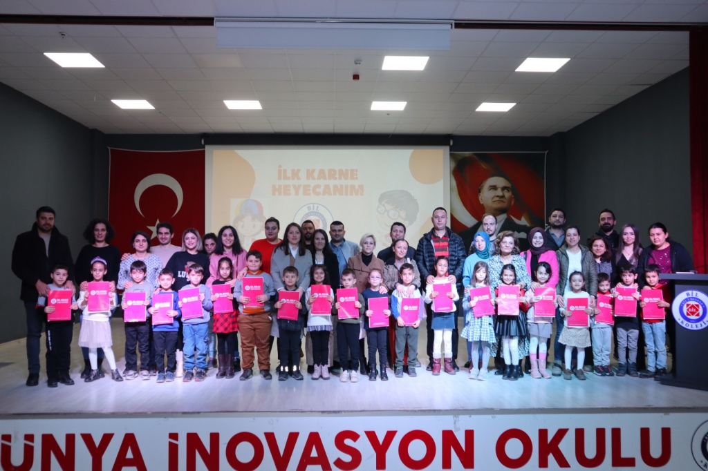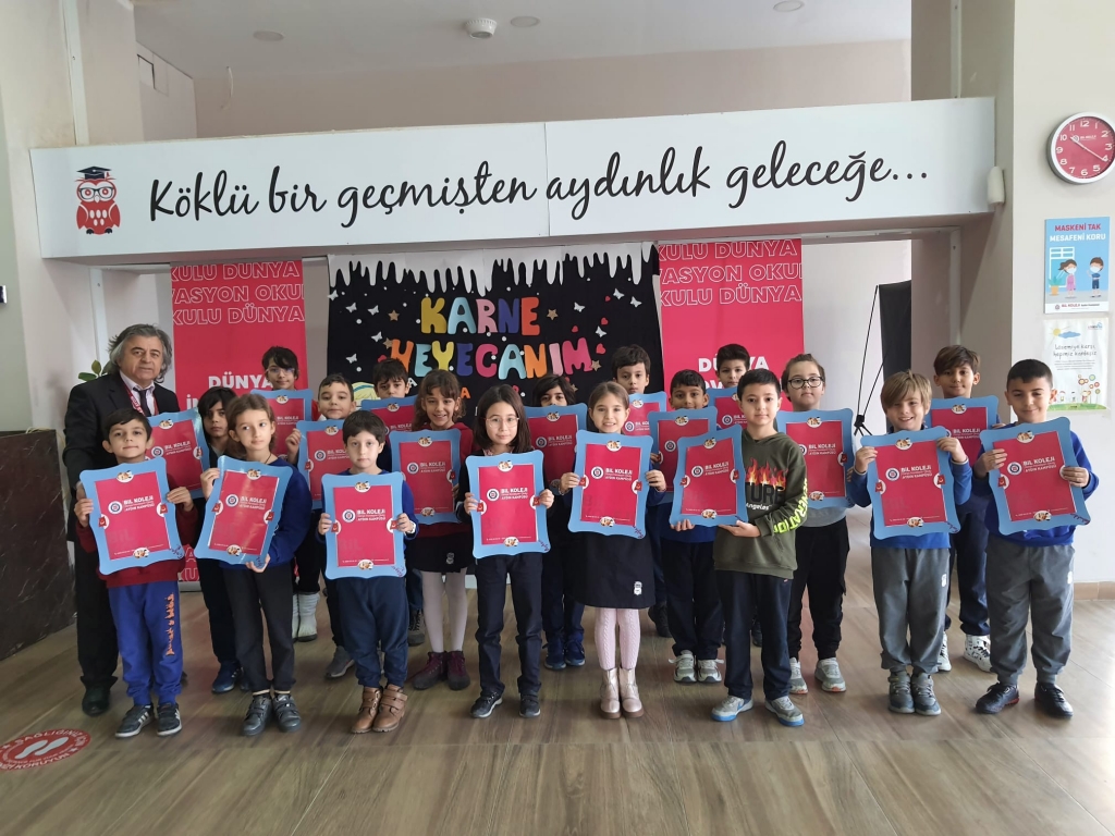 İlk dönem karnelerini sınıf öğretmenlerinden alan öğrencilerimiz ilk dönemi başarıyla bitirmenin sevincini yaşadılar.
