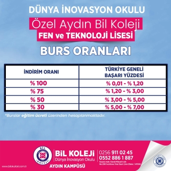 Özel Aydın Bil Koleji Fen ve Teknoloji Lisesi Burs Oranları Belirlenmiştir.