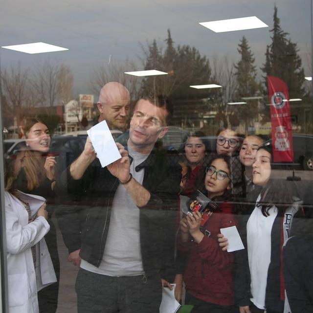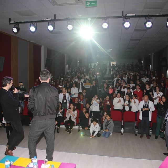 Ünlü oyuncuları, Aydın Bil Koleji Yönetim Kurulu Başkanı Abdullah Helvacı, okul yönetimi, öğretmenler ve öğrenciler karşıladı. Aydın Bil Koleji yönetimi, Ahmet Kural ve Murat Cemcir'e ziyaretlerinden dolayı teşekkür etti.
