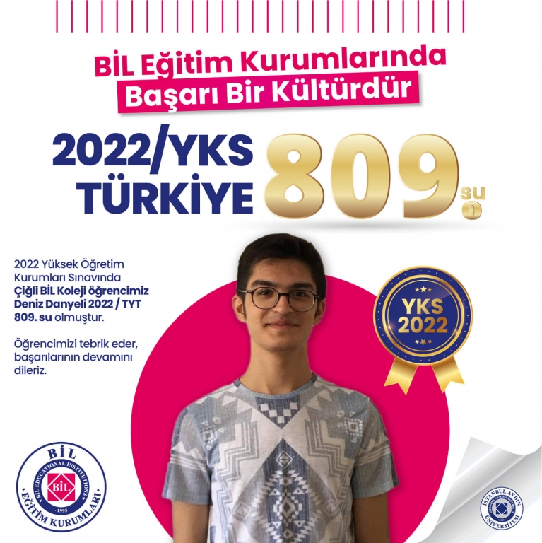 2022 Yükseköğretim Kurumu Sınavında Öğrencimiz Deniz DANYELİ Türkiye 809. 'su olmuştur.