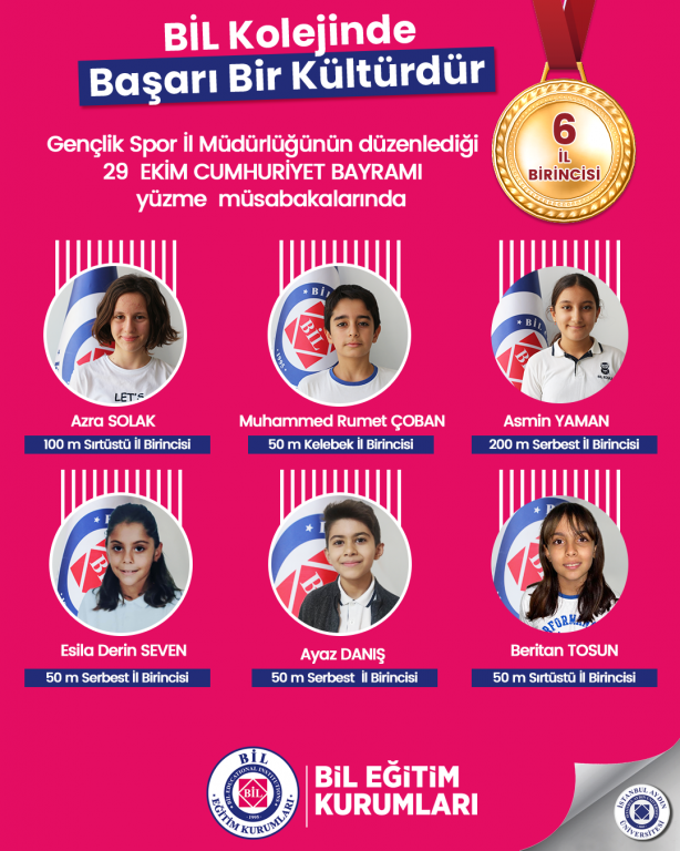 Gençlik Spor İl Müdürlüğünün düzenlediği 29 EKİM CUMHURİYET BAYRAMI yüzme müsabakalarında 6 İL BİRİNCİSİ