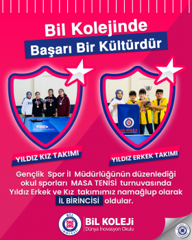 Gençlik Spor İl Müdürlüğünün düzenlediği okul sporları MASA TENİSİ turnuvasında Yıldız Erkek ve Kız takımımız namağlup olarak İL BİRİNCİSİ oldular.