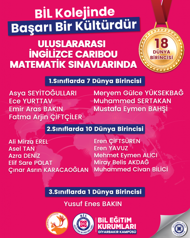 ULUSLARARASI İNGİLİZCE CARIBOU MATEMATİK SINAVLARINDA 18 DÜNYA BİRİNCİSİ