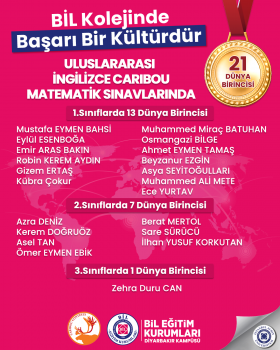 ULUSLARARASI İNGİLİZCE CARIBOU MATEMATİK SINAVLARINDA 21 DÜNYA BİRİNCİSİ