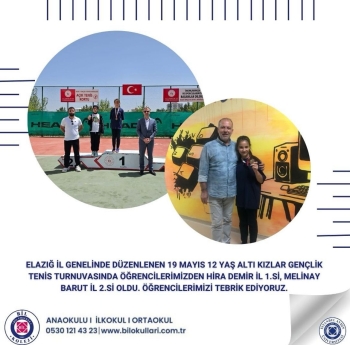• Elazığ İl Genelinde Düzenlenen 19 Mayıs 12 Yaş Altı Kızlar Gençlik Tenis Turnuvasında Öğrencilerimizden Hira DEMİR İl Birincisi, Melinay BARUT İl İkincisi Oldu. Öğrencilerimizi Tebrik Ediyoruz.