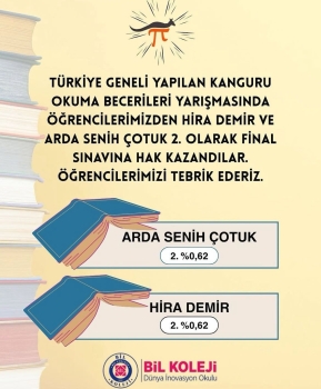 Türkiye Geneli Yapılan Kanguru Okuma Becerileri Yarışmasında Öğrencilerimizden Hira DEMİR ve Arda Senih ÇOTUK 2. olarak Final Sınavına Hak Kazandılar.