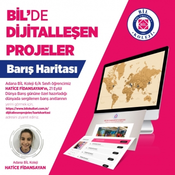 Adana BİL Koleji 6/A Sınıfı öğrencimiz HATİCE FİDANSAYAN'ın, 21 Eylül Dünya Barış gününe özel hazırladığı