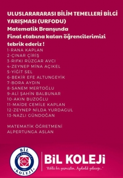 Matematik Branşında Final etabına katılmaya hak kazanan 13 öğrencilerimizi tebrik eder, başarılarının devamı dileriz.