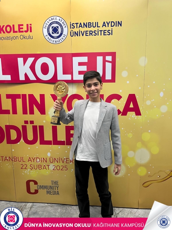 BİL KOLEJİNDE BAŞARI KÜLTÜRDÜR! İSTANBUL AYDIN ÜNİVERSİTESİ VE BİL EĞİTİM KURUMLARININ DÜZENLEDİĞİ III. ALTIN YONCA ÖDÜLLERİ'NDE ÖĞRENCİLERİMİZ TARIK SARIYAR VE SEVDE MENGÜÇ ÖZEL YETENEK ÖDÜLÜ ALDILAR!