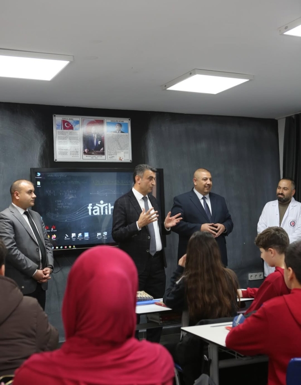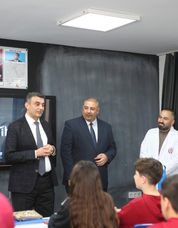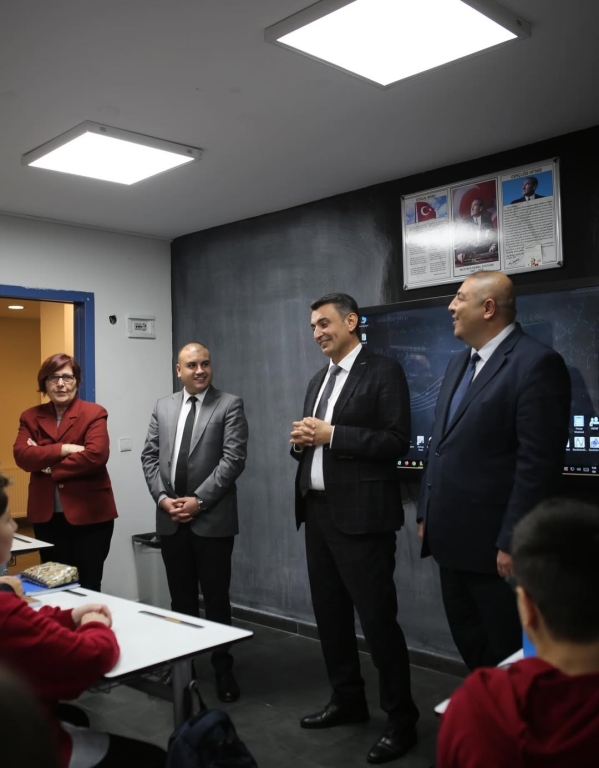 Ziyaretleri sırasında sınıfları gezerek öğrencilerimizle yakından ilgilenerek onların hedeflerini, ilgi alanlarını ve geleceğe dair beklentilerini dinleyen Kaymakamımız; eğitime verilen değerin ve güçlü iş birliğinin önemini bir kez daha vurguladı.