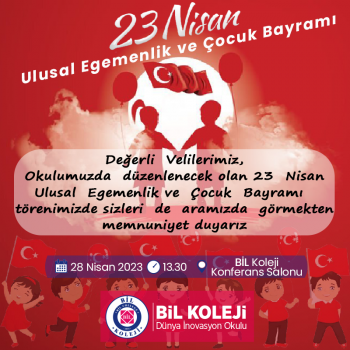 23 Nisan Kutlamaları, ara tatilden dolayı 28 Nisan Cuma Günü Yapılacaktır.