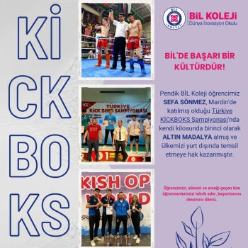 Pendik Bil Koleji öğrencimiz SEFA SÖNMEZ, Mardin’de katılmış olduğu Türkiye KİCK BOKS Şampiyonası’nda kendi kilosunda birinci olarak altın madalya almış ve yurt dışında ülkemizi temsil etmeye hak kazanmıştır.