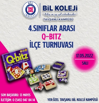 Okulumuzun İlçe geneli düzenlemiş olduğu İlkokul 4.Sınıflar Arası Q-Bitz Turnuvası eğlenceli bir şekilde yapıldı. Katılım gösteren tüm öğrencilerimizi tebrik eder, başarılarının dvamını dileriz.