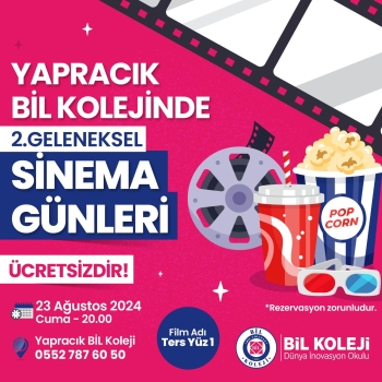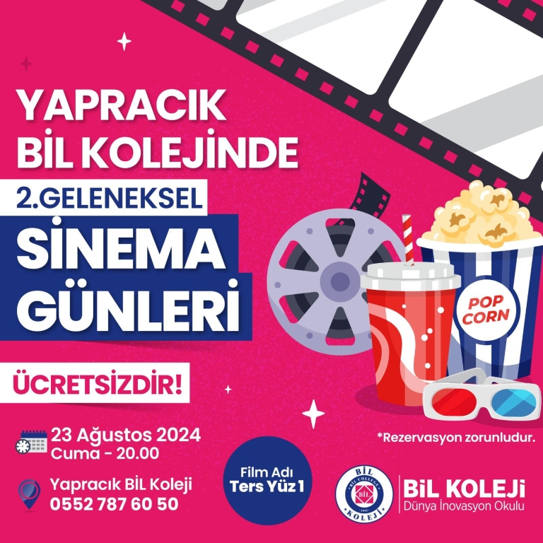 Yapracık BİL Koleji olarak, öğrencilerimiz ve ailelerimiz için 23 Ağustos 2024 Cuma günü saat 20.00’de unutulmaz bir sinema deneyimi sunuyoruz. Bu yıl 2.’si düzenlenecek olan Geleneksel Sinema Günleri’nde, eğlenceli animasyon filmi **”Ters Yüz 1”sizlerle buluşacak!
